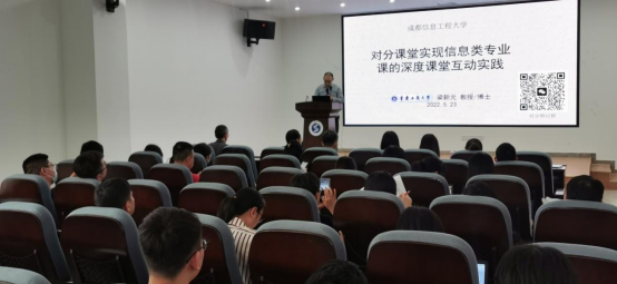 梁教授从课堂互动入手,分享了“对分课堂 挖呀挖”主题歌词,讲解了对分课堂的基本原理,介绍了自己在对分课堂的多年实践情况。对信息类专业课进行教学分析后,分别展示了实践型课程和理论型课程的对分实施步骤和方法,分享了取得的教学成果与对分推广情况。讲座结束后,梁教授还回答了老师们的提问。