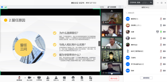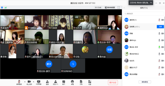 团委、学生会线上换届面试。由主席团代表、部长代表对各部门进行面试考核。