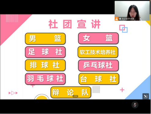 学生会主席杨力蕴为大家简单介绍学院团委和学院学生会、社团的概况。接着各部门负责人、社团负责人分别以PPT和视频的形式,从部门重要性、日常工作、涉及事宜等方面出发为大家宣讲部门特点和情况。他们以饱满的热情、诚挚的语气,完成了本次宣讲。会后2022级新生纷纷踊跃扫码加入各部门招新群。
