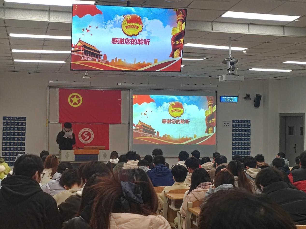 2025-2026学年二级团校第五次团课暨结课仪式在H1102举行。学院学生会主席刘文彬、组织部相关负责人及2025级各支部委员会成员、入团积极分子参加本次团课。