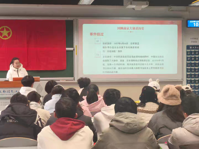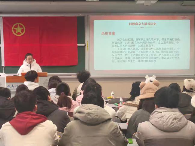 12月26日,为引导团员青年深刻铭记南京大屠杀这段沉痛的历史,缅怀所有惨遭日本侵略者杀戮的死难同胞,数据科学与大数据技术专业的同学们在H4205教室举行了以“铭记国殇砥砺志,青春勇担复兴任”的团学活动。