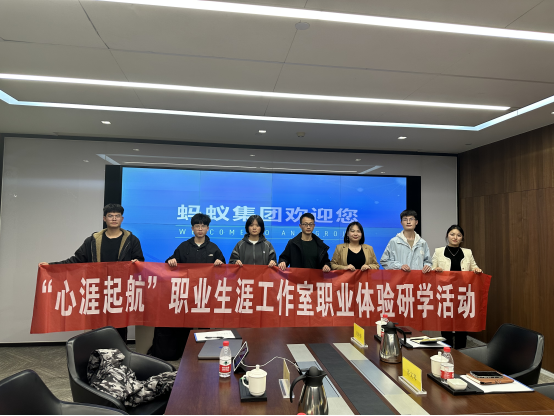11月16日下午,学院“心涯起航”职业生涯工作室前往蚂蚁集团成都分公司开展职业体验研学活动,此次活动由工作室负责人张俊锋带队,教师成员张澄、齐文琴及部分学生团队成员参加。