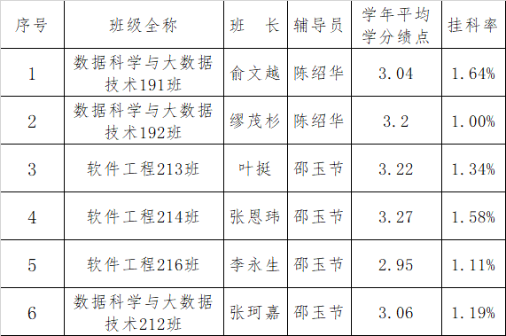 开展了2021-2022学年“优良学风班”评选工作。本次评定按照各班级主动申请,学院“优良学风班”评审工作组审核,拟确定以下班级获得“优良学风班”,现予以公示。