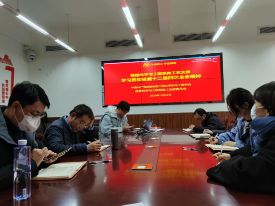2023年12月22日,数据科学与工程系教工党支部在信达楼B505会议室组织开展中国共产党四川省第十二届委员会第四次全体会议精神专题学习会,支部书记王亚强主持学习会并领学。