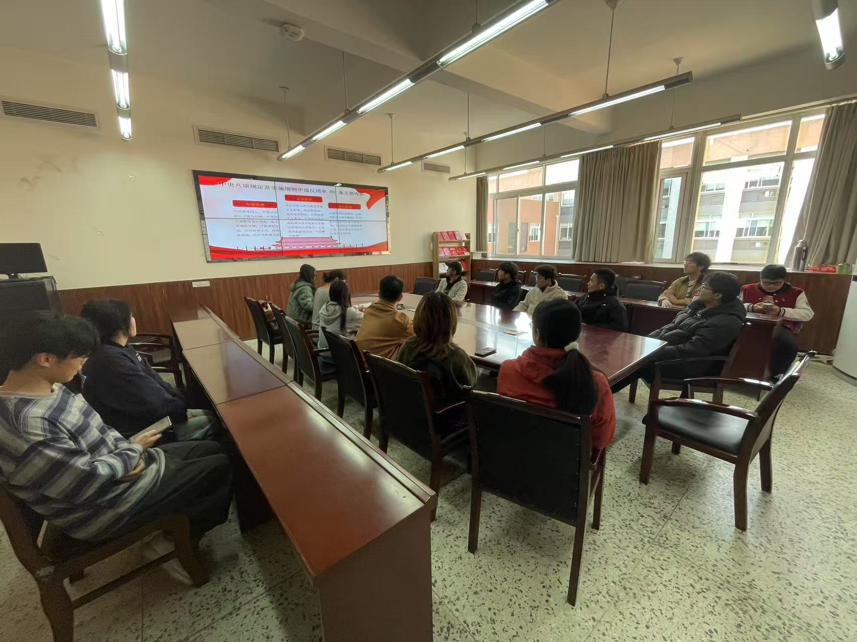 2025年4月2日下午,学院学生第四党支部在信达楼B505会议室开展了一场聚焦中央八项规定的专题学习活动。本次活动由支部书记齐文琴主持,支部全体党员齐聚一堂,深入领会中央八项规定精神,筑牢纪律作风防线。