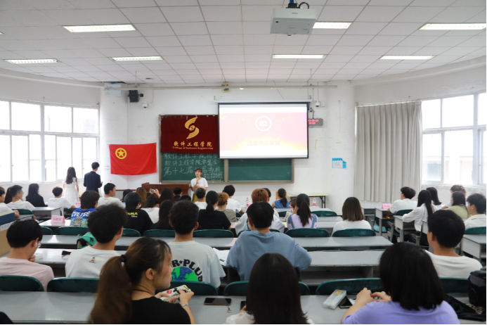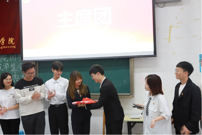 团委、学生会第十七届换届典礼在航空港校区4313教室召开。原团委书记万娟老师,现团委书记胡培老师,团委副书记张澄老师,2020级辅导员齐文琴老师,学生会主席团,全体部门负责人和志愿者们参加了本次典礼。