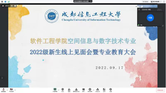 举行了2022级新生线上见面会暨专业教育大会。本次会议分为三个会场,分别由气象空间信息工程系系主任何磊老师、数据科学与工程系系主任王亚强老师以及软件工程系系主任李蕊老师主讲,2022级全体新生参加了本次线上见面会,会议由2022级新生辅导员胡培主持。