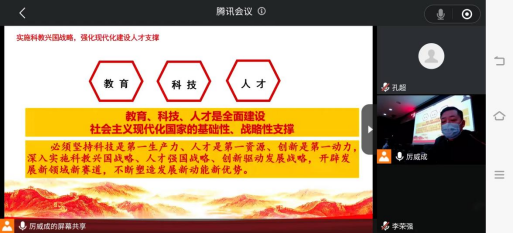 雷超从党的二十大的主题、胜利召开的重大现实意义、党章修改情况等方面,深入生动解读了党的二十大精神,并结合自身学习认识,对习近平总书记报告中的深刻把握过去五年的工作、新时代十年的伟大变革等内容进行了阐释。他指出,学习宣传党的二十大精神,既要整体把握、全面系统,又要突出重点、抓住关键,党的二十大报告把教育、科技、人才专章论述、一体部署,既是对发展经验的科学总结,也是对未来的深远谋划,凸显了教育、科技、人才在现代化建设全局中的战略定位,进一步彰显了党中央对于教育、科技、人才事业的高度重视,具有深远的战略考量。他强调,实施科教兴国战略,强化现代化建设人才支撑,必须扎实下好优先发展教育事业,办好人民满意的教育这步“先手棋”,坚持创新在我国现代化建设全局中的核心地位,完善科技创新体系,加快实施创新驱动发展战略,深入实施人才强国战略。