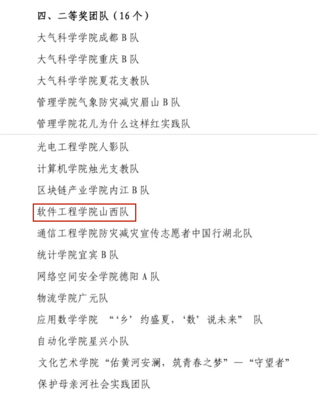 荣获“先进单位”称号,“杏花心语”实践队被评为“特等奖团队”,山西队被评为“二等奖团队”,指导老师张澄、万娟被授予“先进教师”称号,关胜、唐秋瑶、张力月同学被授予“先进个人”称号。