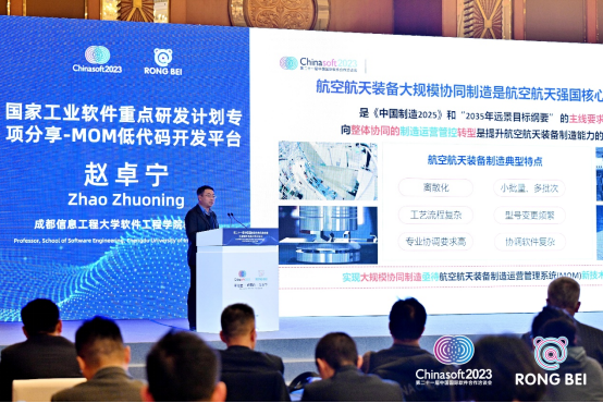 学院赵卓宁教授,在工业软件生态合作洽谈会上作“国家工业软件重点研发计划专项分享—MOM低代码平台开发”主题报告。