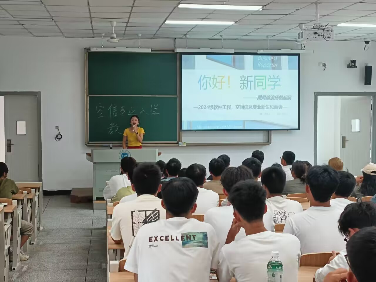 会议伊始,何磊老师为新生们全面介绍了空间信息与数字技术专业的基础知识与专业背景,阐述了该专业的发展历程、当前的行业动态及未来社会的发展趋势,激发了同学们对专业的浓厚兴趣。与此同时,何磊老师还介绍了学院在该领域的师资力量,强调了学院师资团队的合理配置与卓越的科研与教学能力,为同学们提供了坚实的学术支持。