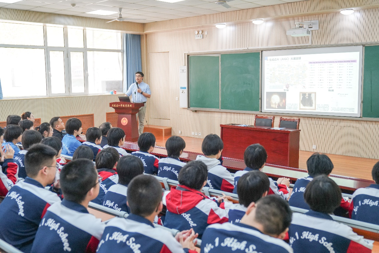 4月11日,童强一行前往石家庄一中东校区。双方围绕深化合作、加强人才培养衔接等议题展开深入交流,旨在为优秀学子搭建更广阔的发展平台。在授牌仪式结束后,数据科学与工程系主任王亚强在为石家庄一中东校区的学生们开展了主题为《“AI+”时代真的到来了吗?》的科普讲座。他结合人工智能前沿发展,深入浅出地解析AI技术对社会、教育及未来职业的影响,激发了学生们对科技创新的浓厚兴趣。