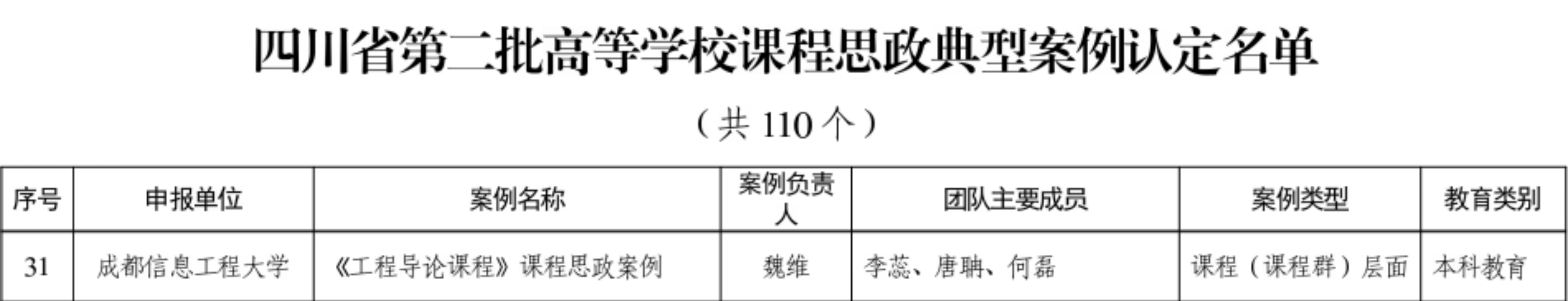 入选省级课程思政标杆院(系),教师魏维团队的《工程导论》课程入选省级课程思政典型案例。