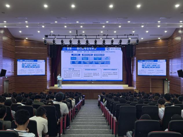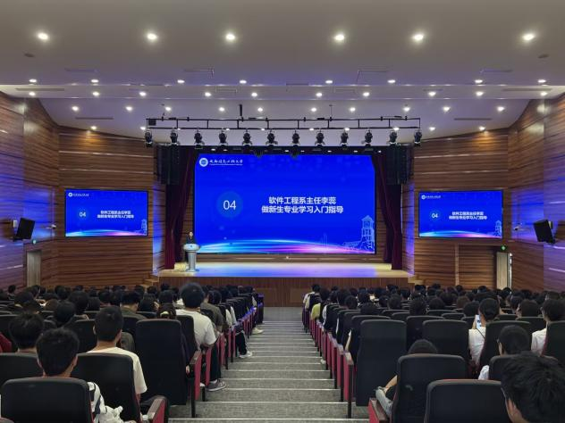 在学校成信礼堂召开2025级新生入学教育暨师生见面会。学院院长唐聃,党委副书记、纪委书记童强,副院长魏维,软件工程系主任李蕊,实验室主任黄健,教师代表高燕,全体辅导员及全院新生参加会议。会议由团委书记齐文琴主持。