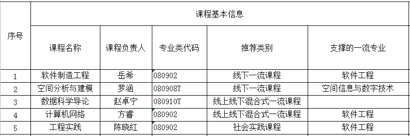 根据学校教务处发得“关于开展2020年省级线下、线上线下混合式、社会实践一流本科课程申报工作的通知”精神,顶通漫画 推选《软件制造工程》等以下5门课程参加“省级一流本科课程申报”,特此公示。公示日期:2020年12月23日—12月25日,若学院教师对此次推选工作有异议的,请于公示期三日内联系顶通漫画 教务科黄健,电话85966923。