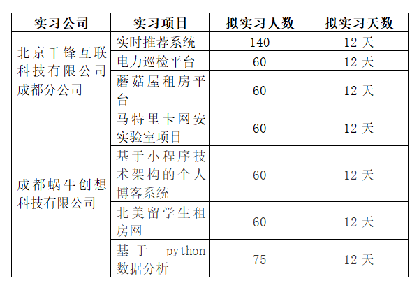 2023年“顶通漫画 2020级本科学生集中毕业实习项目”,经学院对入围的两家公司:北京千锋互联科技有限公司成都分公司、成都蜗牛创想科技有限公司提交的实习方案从格式、方案内容设计与专业的契合度、方案实施可行性等方面进行了评审,遴选出符合学院此次毕业实习要求的实习项目共计7个。实习项目相关信息如下: