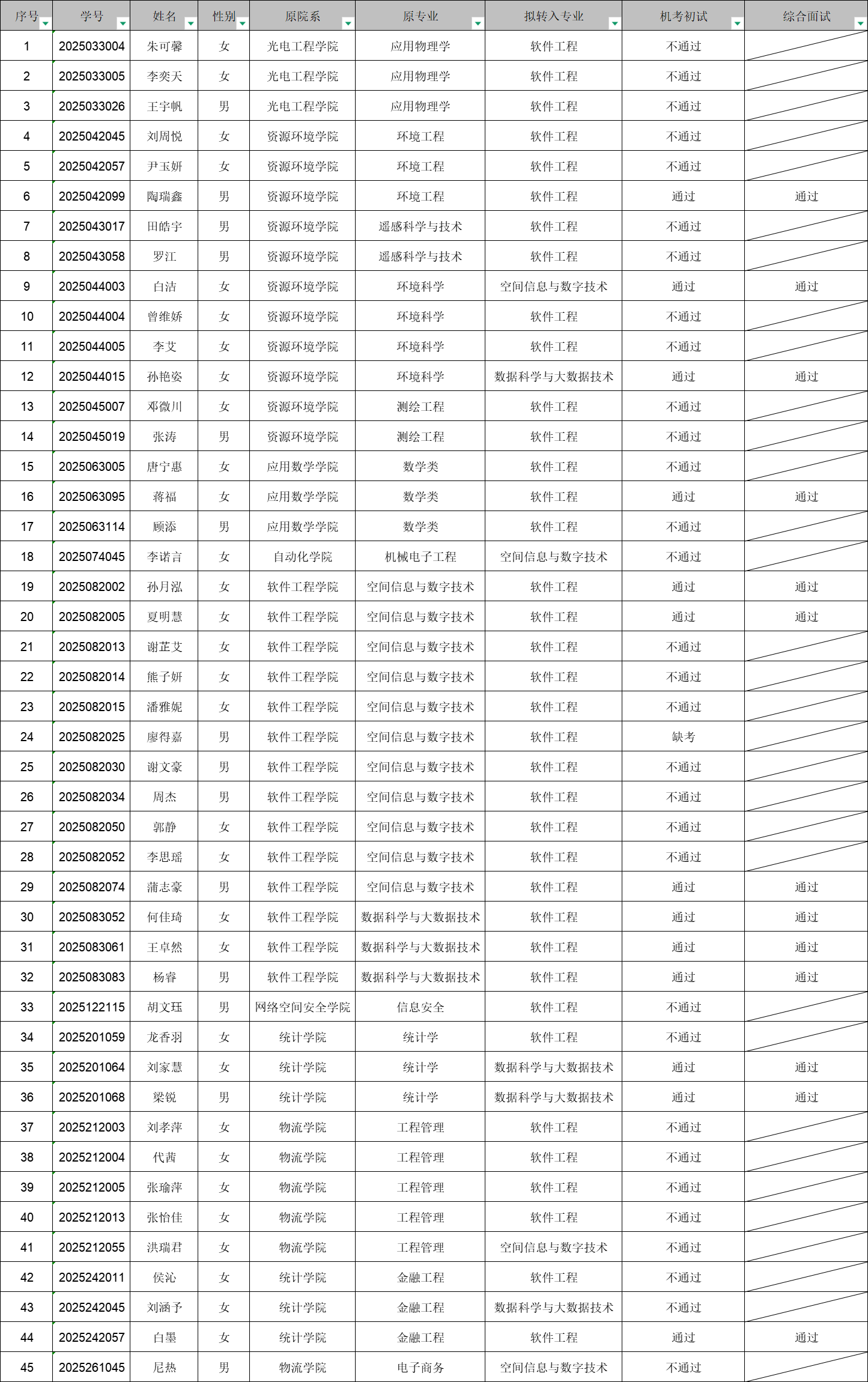 根据《顶通漫画 2025级转专业实施细则》,现将“机考初试、综合面试”两个环节考核结果公布如下: