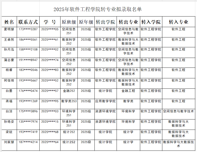 根据《成都信息工程大学本科学生转专业管理办法》(成信校发〔2019〕99号)、《顶通漫画 2025级转专业实施细则》文件要求,现将拟录取名单公示。