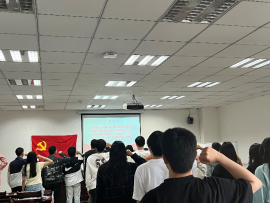 最后,全体党员面向党旗庄严宣誓,本次学生党支部大会圆满结束。