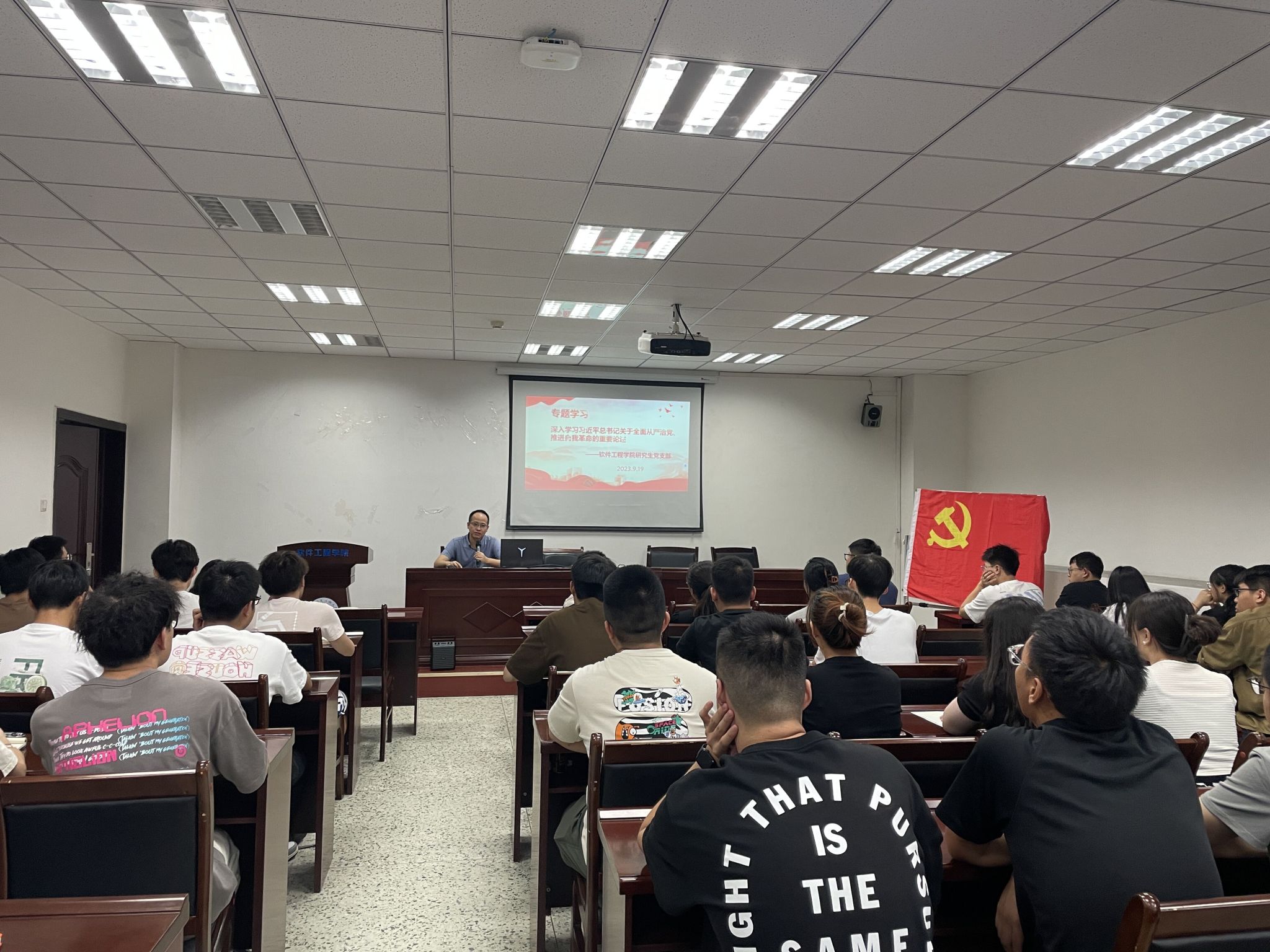 研究生党支部于2023年9月19日在信达楼A502举行党支部大会,由支部宣传委员陈光耀主持,党委书记马义华、研究生党支部书记万娟,支部全体成员参会。