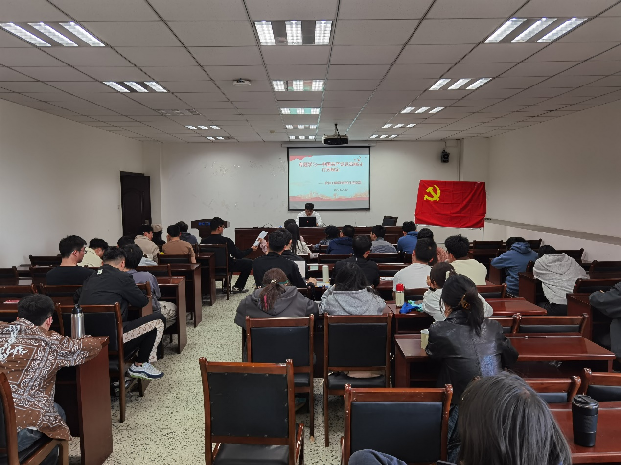 研究生党支部在双中心A502教室进行中国共产党纪律处分条例的专题学习。本次学习仁和同志主持,带领支部全体在校党员学习。