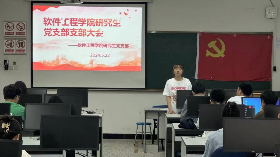 研究生党支部在信达楼B507教室举行了党支部大会。大会由支部书记万娟同志主持,30余名党员共同参会。