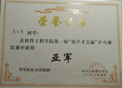 第一届“爱乒才会赢”乒乓球比赛于4月23日中午12点30分在校乒乓球场拉开帷幕,此次活动共计上百人参与,其中2022级杨毅涵同学夺得冠军,莫礼润夺得同学亚军,黄兴灿同学夺得季军。