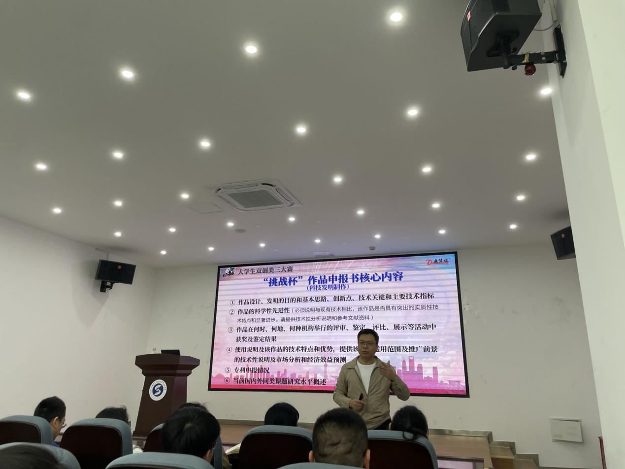 讲座上王钊仙老师从大赛的意义、作品申报,团队组建,答辩解说以及申报视频展示等方面进行了分享。王钊仙老师从比赛目的出发,向大家介绍和指明了大赛的重要性以及同学们努力的方向,又通过作品申报核心内容,结合各项目实战有针对性地为大家指导如何进行发明制作。最后同学们根据自己当前的困惑提问,老师一一解答,提出建议。