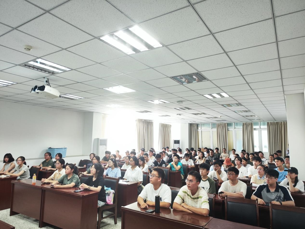 张澄首先结合习近平新时代中国特色社会主义思想对新生们进行了理想信念教育,帮助新生树立正确的社会主义核心价值观。随后她为新生们详细介绍了校园环境、专业特色、课程设置以及校园文化,帮助新生快速熟悉并融入大学生活。同时针对新生可能面临的适应问题,提供了心理辅导和建议,分享了有效的时间管理和压力调节技巧,帮助新生们建立健康的生活方式,保持良好的学习状态。