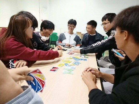 10月3日,学院举办了《桌游之夜:交个朋友吧》桌游活动,活动内容丰富,德诺牌(UNO)、三国杀、狼人杀、谁是卧底每个游戏都充满互动与乐趣,让大家在轻松愉悦的氛围中度过愉快的夜晚,同时也增进同学彼此间的了解。
