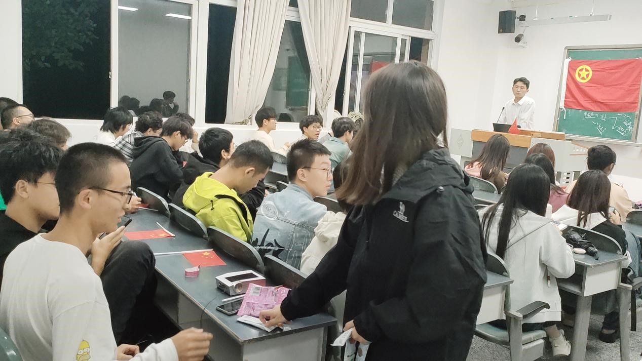 活动开始,全体同学起立齐唱团歌。在团支书的引导下,同学们观看了纪录片《开国大典》,感悟到新中国的成立来之不易,意义非凡。在新时代的建设中,青年应不忘历史,牢记使命,砥砺前行。