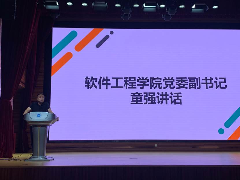 榜样分享环节结束后,学院党委副书记童强讲话。他首先对 8 位青春榜样的出色表现给予高度肯定,称赞他们“用实际行动诠释了新时代青年的责任与担当,是同学们身边的优秀典范”。随后,童强副书记围绕当代大学生应有的精神追求和实践路径展开深入阐述。他语重心长地强调:“大学是人生中至关重要的阶段,是知识积累、能力提升和价值观塑造的关键时期。希望同学们以榜样为镜,既要脚踏实地、勤奋刻苦地学好专业知识,为未来发展筑牢根基;又要胸怀家国、志存高远,勇担时代使命,将个人理想融入国家和民族的事业中。”