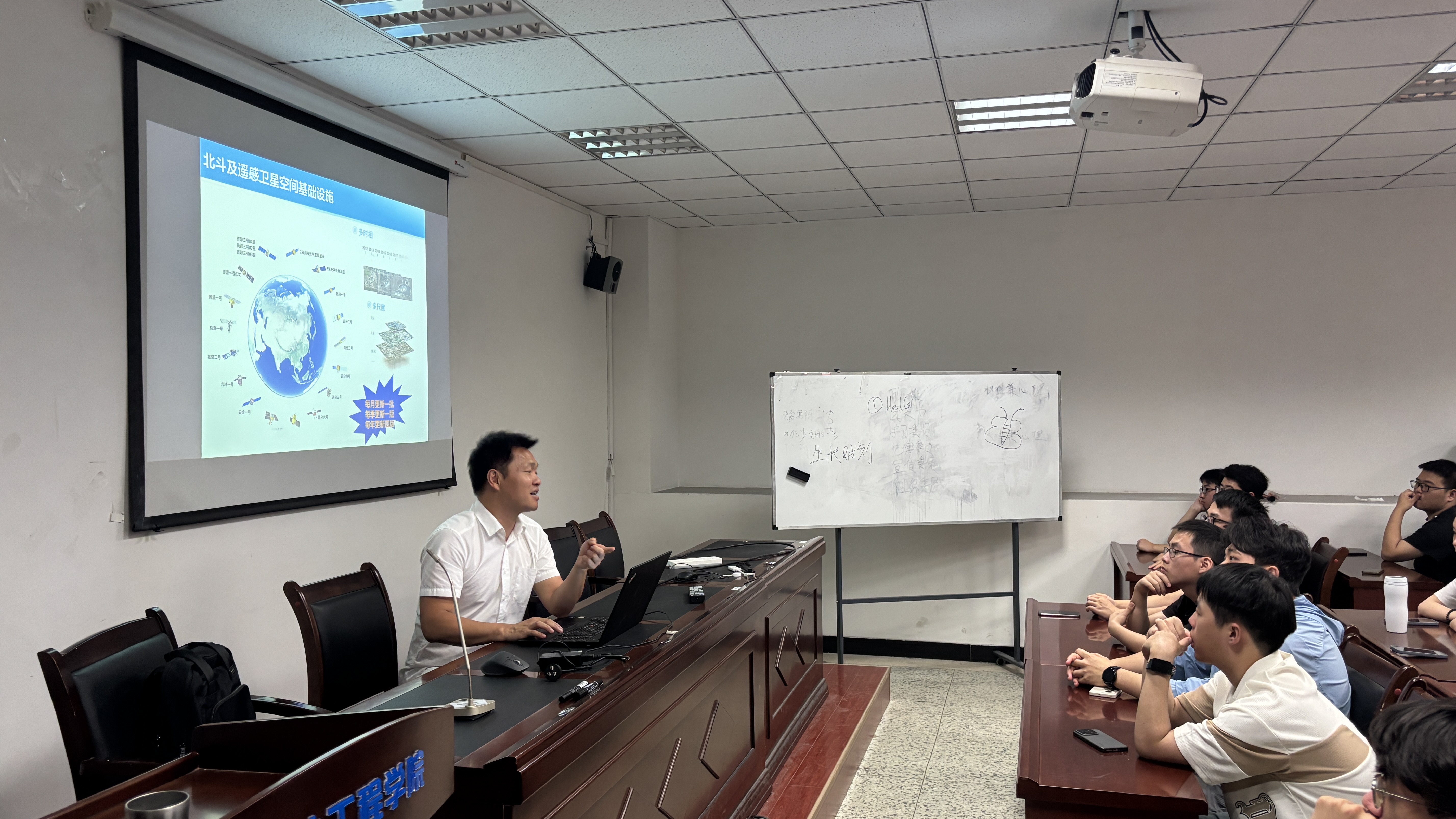 在应用场景阐释环节,万里红工程师通过丰富案例展示了时空信息新基建在数字中国建设中的多元实践。在智慧城市领域,借助该基建体系可实现城市基础设施的精细化管理与智能化调度;在自然灾害监测预警与应急响应场景中,高精度时空信息支撑灾害早期预判与快速处置;在现代农业发展中,时空信息技术助力精准农业落地,有效提升生产效率与经济效益。最后,同学们围绕讲座内容及职业发展规划等议题踊跃提问,如低空经济、GIS与游戏方向深度融合等,万工逐一作出详尽解答。他寄语同学们,要紧跟时代技术变革潮流,主动拥抱新技术、掌握新技能,将专业所学转化为实践动能,在数字中国建设征程中贡献青春力量。